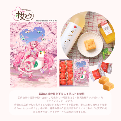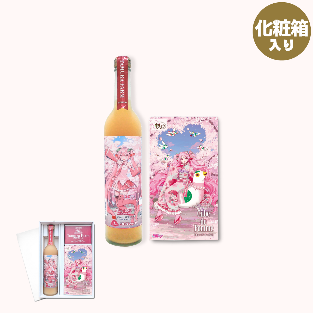 春の訪れを祝う特別なひとときを、大切な方へ。人気キャラクター桜ミクの愛らしいイラストに包まれた、プレミアムりんごジュースとアップルワインケーキを一つのセットにしました。青森県弘前市の豊かな自然が織りなす贅沢な味わいの詰め合わせです。